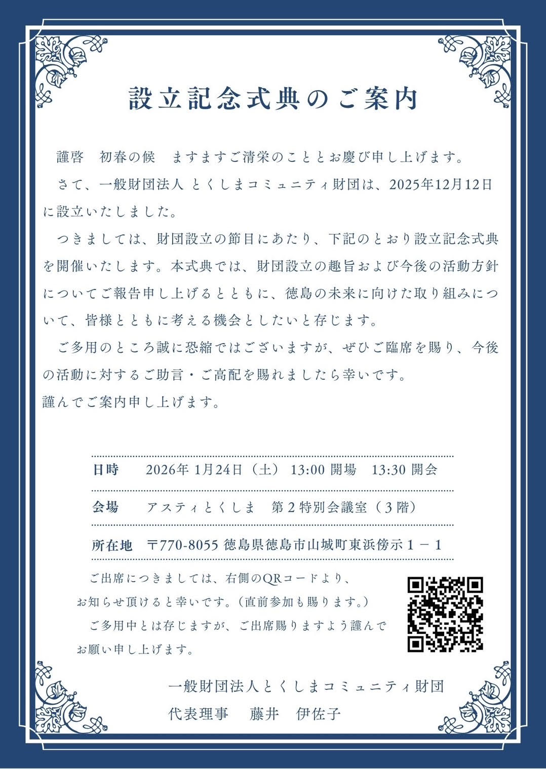 一般財団法人とくしまコミュニティ財団は、2025年12月12日に設立いたしました。
