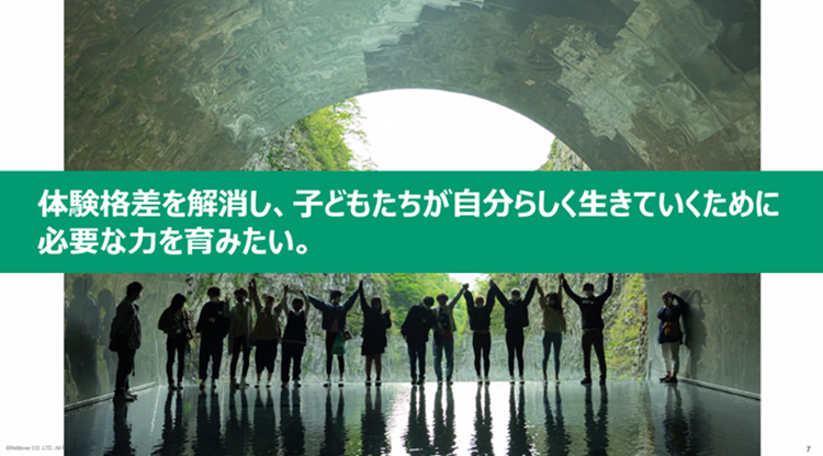 事業の対象は2つあります。ひとつは「奨学金をもとにした『多様な体験から学ぶ』旅の提供」として多様な体験を格差のある子どもたちに直接提供して、学んでもらうもの。ふたつ目は、子どもの体験格差に関する調査研究・情報発信・政策提言があります。