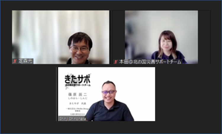 北海道における災害中間支援組織、北の国災害サポートチーム(以下、きたサポ)の代表を務める篠原さんと、チームメンバーの本田さん、定森さんにお話を伺いました。