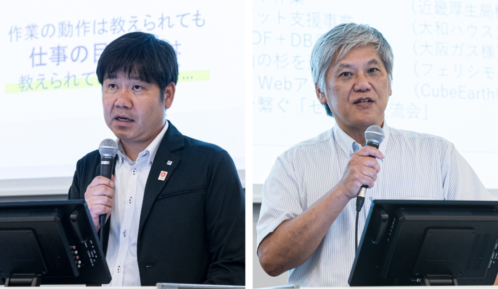 連携企業の3人が登壇し、パネルディスカッションが行われました。まずモデレーターの金田氏が全員に対して、ご自身以外の2つのケースに関する感想を聞きました。