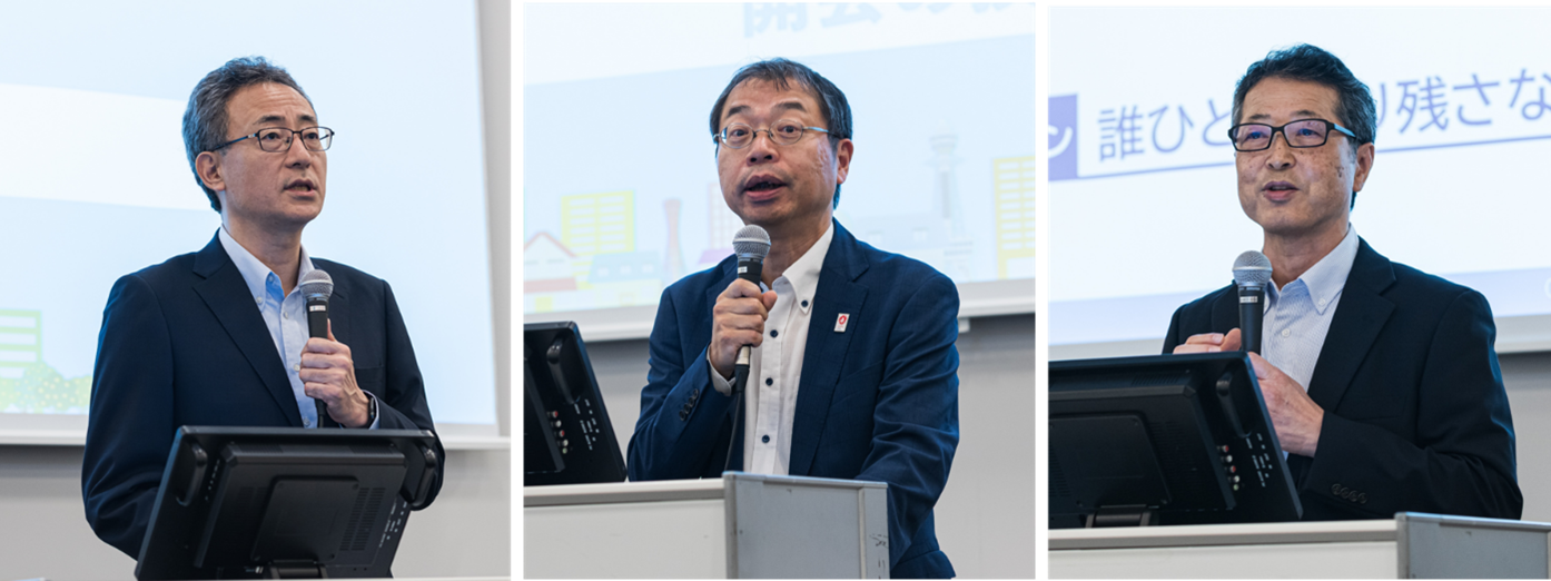 事例紹介では、3事例の連携企業と連携団体(実行団体)が順に登壇して、今回の取り組みや成果、今後に向けた思いなどについて話をしました。NTTデータグループ サステナビリティ経営推進本部 シニア・スペシャリストの金田晃一氏がモデレーターを務めました。