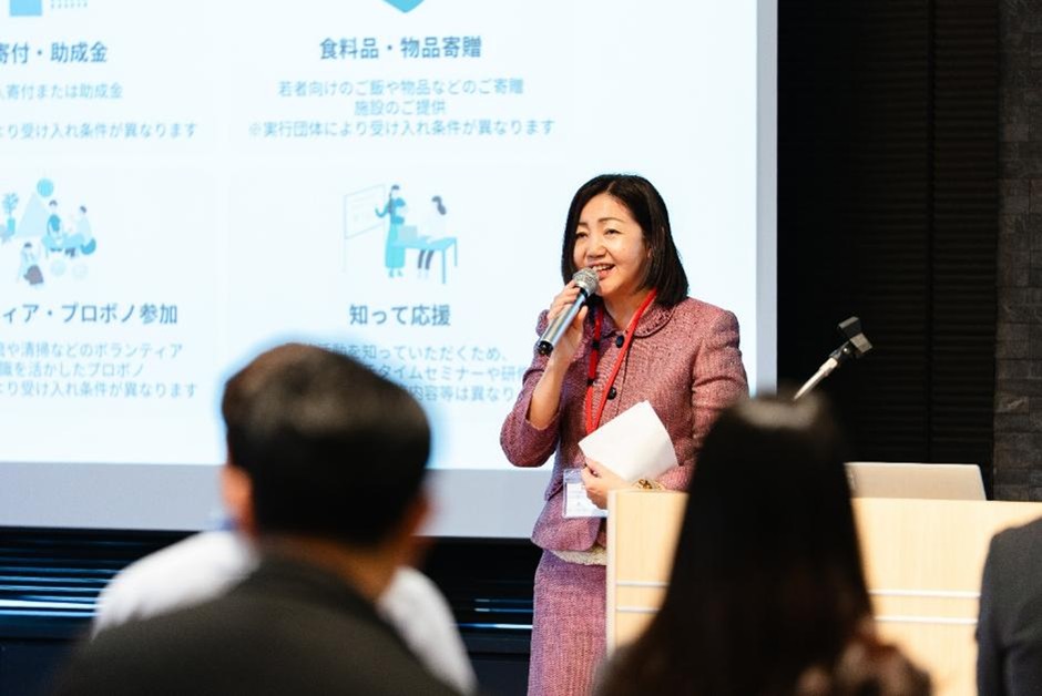 また、実際にプレゼンテーションを行った団体からは「実行団体は全国各地にいらっしゃるので、遠方の方はなかなか東京まで来ることができません。その代わりに調整役である資金分配団体が思いを伝える機会をいただけたので、大変助かりました」といった声がありました。さらに「今回はどのような連携の形があるのか、企業の方に向けて具体的に説明させてもらいました。どのように支援すればよいか迷う企業の皆さんにとって少しでも参考になったらうれしいです」などの感想も。また発表の中で、実行団体のメンバーにも登場してもらい、より具体的なニーズについて話す時間を設けるなど、伝え方を工夫している資金分配団体も見られました。