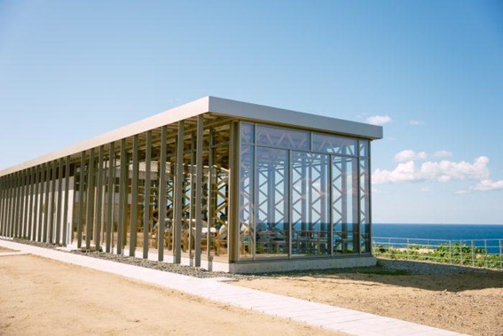 潮騒レストランの外観。どの席に座っても外浦の海を一望することができる